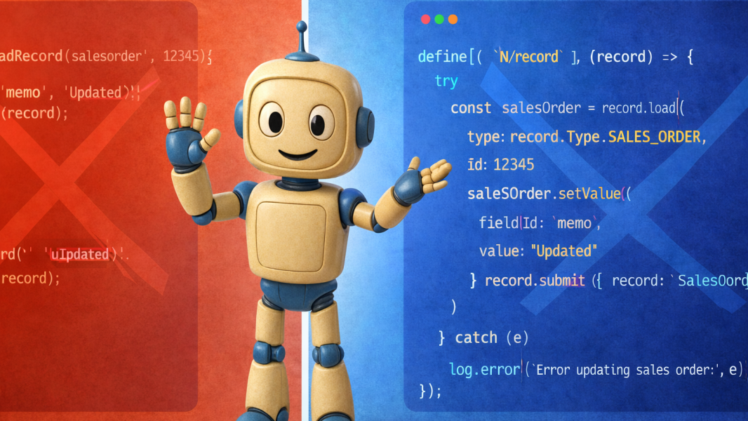 If you've ever asked an AI (ChatGPT, Claude, etc) to write NetSuite SuiteScript, you know the frustration. You often get SuiteScript 1.0 code peppered with nlapiLoadRecord calls. No error handling. No governance awareness. No deployment instructions. And when you ask for help with a purchase order approval, it jumps straight to custom code, even though a native SuiteFlow workflow might be a better option.
